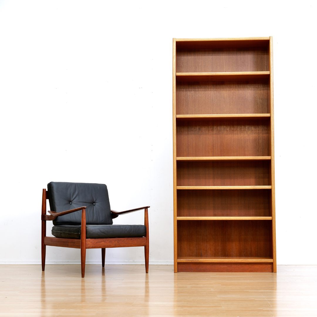 This vintage bookcase was produced in Denmark during the 1970s. A tall handsome bookcase, It is constructed of teak and features adjustable shelves for ultimate versatility to store and showcase books and decorative objects. . Perfect for a living room, office or entryway.