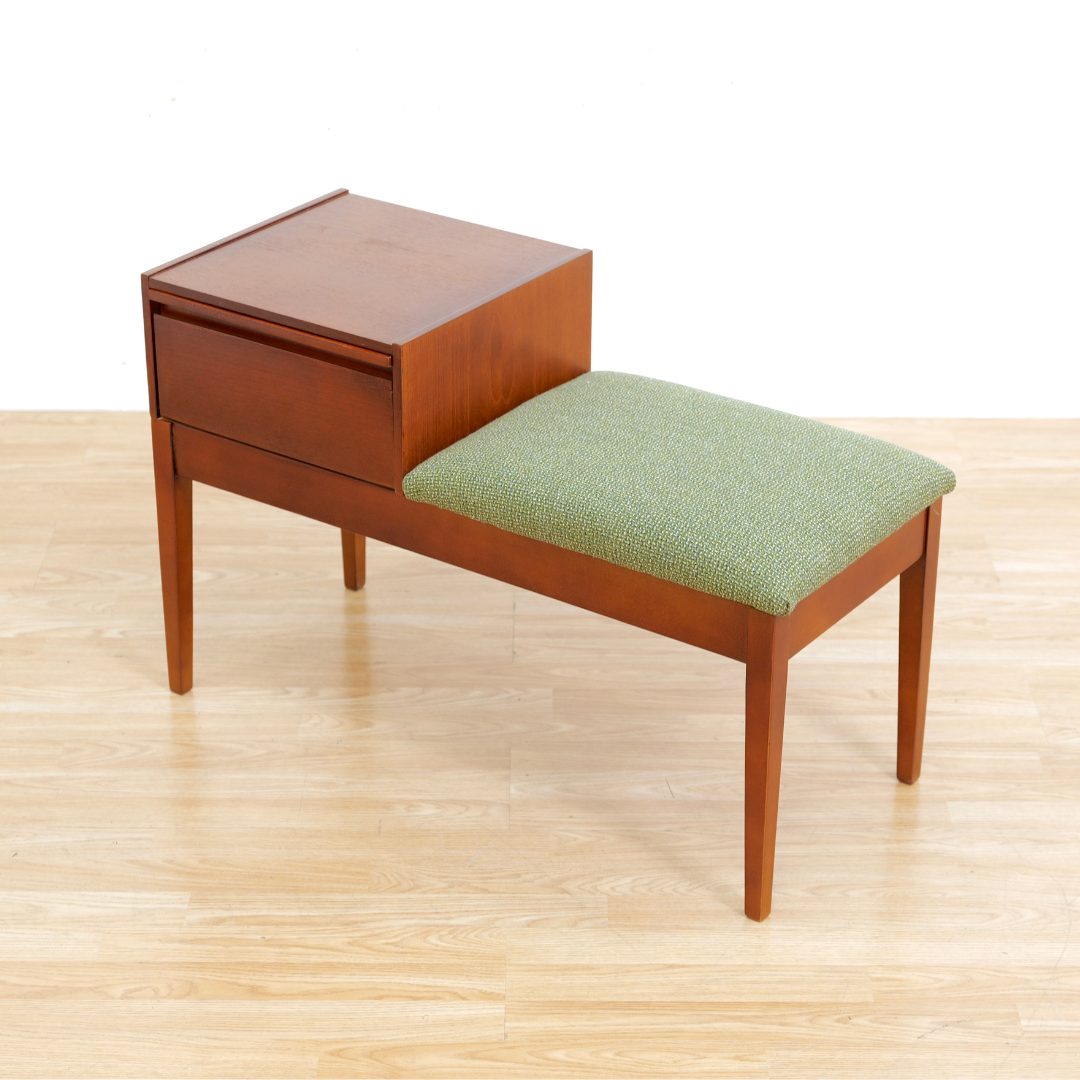 MID CENTURY ENTRYWAY IN TEAK & GREEN BENCH BY CHIPPY HEATH