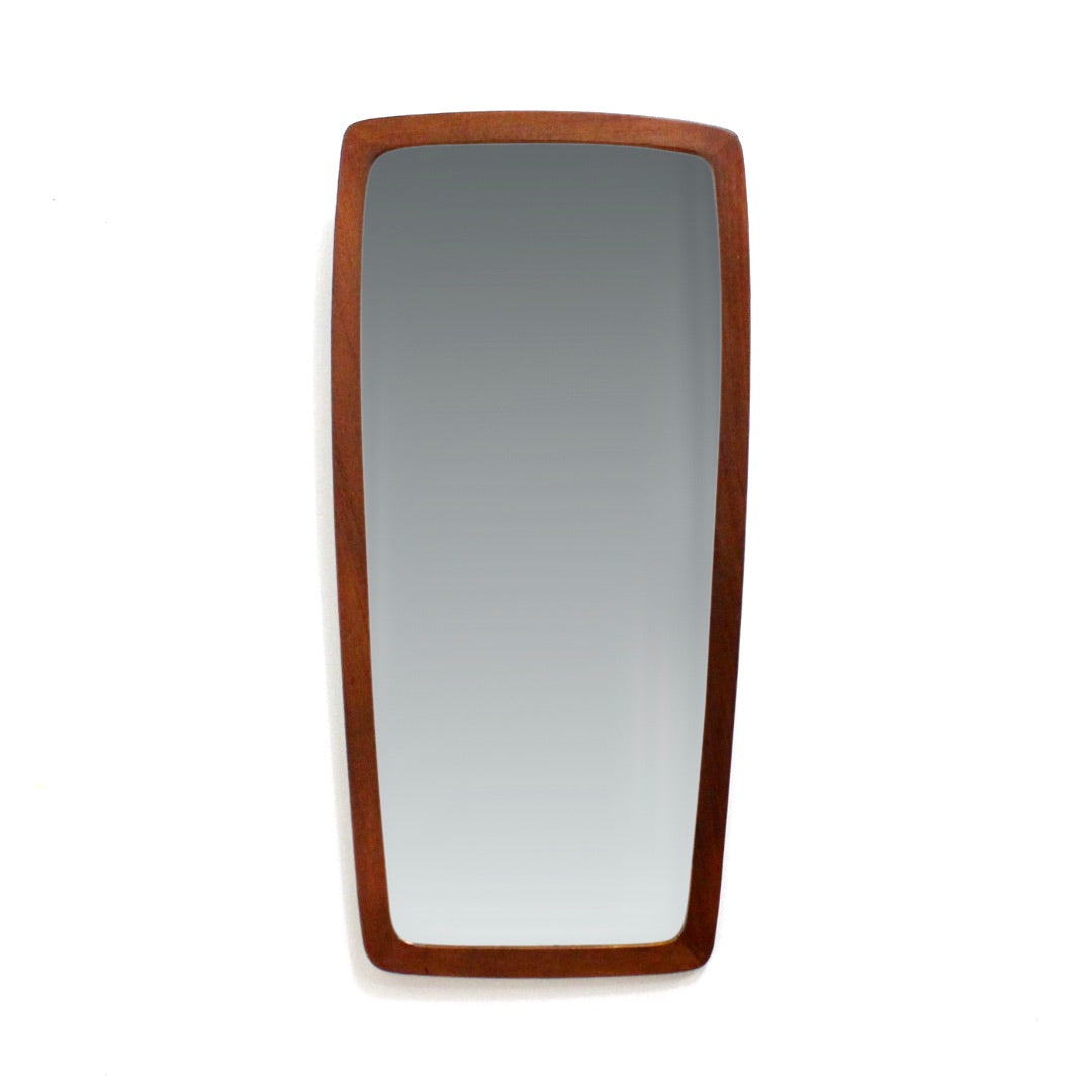 This mid-century wall mounted mirror was made in Denmark during the 1960s. Produced in teak, the frame a has a beautiful curved design and would be perfect for an entryway, living room or bedroom.