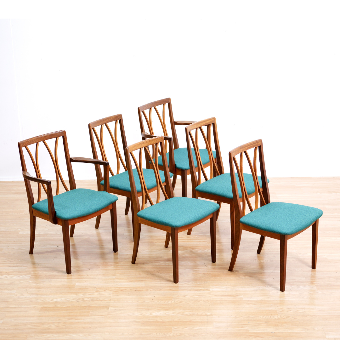 Set of Six Mid Century Dining Chairs by G Plan in Teal
