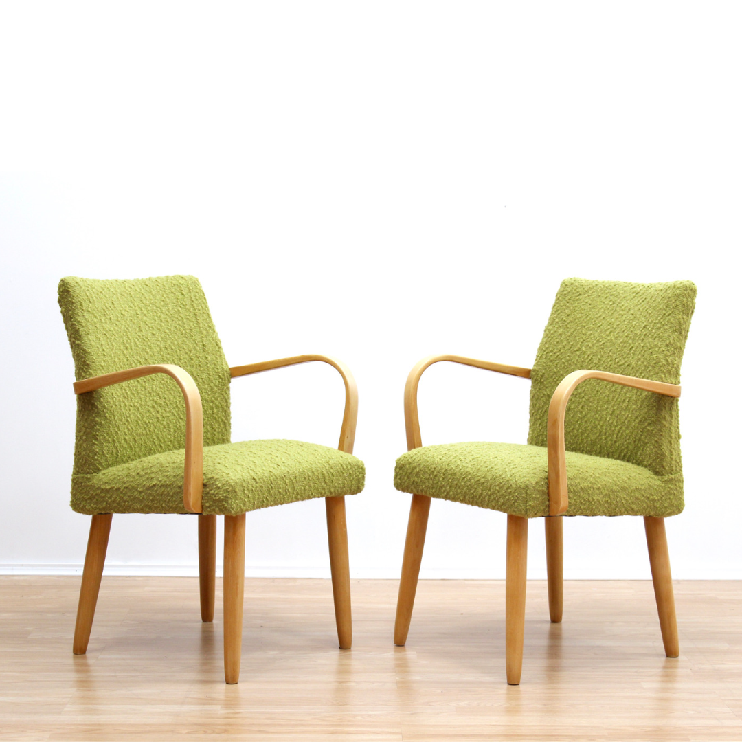 PAIR OF MID CENTURY 1950S BENT WOOD COCKTAIL LOUNGE CHAIRS IN GREEN TWEED